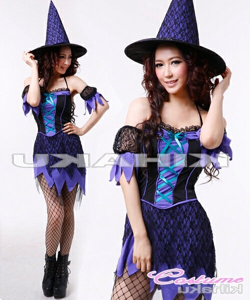 魔女 魔法使い コスプレ ハロウィン 衣装 帽子 ワンピース ドレス ヴィランズ ウィッチ 服 コスチューム 仮装 セクシー かわいい 可愛い ブルー 青 全身 変身 クリスマス ハロウィーン イベント パーティー 黒 ブラック かっこいい おしゃれ 巫女 レディース 大人用 (T)