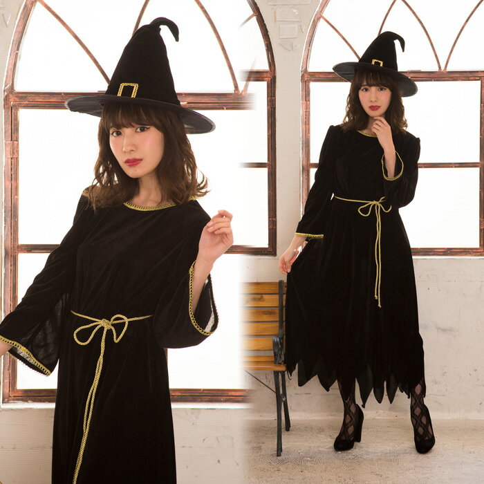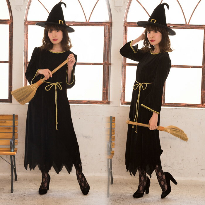 ≪Costume/Halloween≫ウィッチ 魔女ロング丈でクラシカルな印象が大人っぽい魔女コスチューム!ストレッチ素材でとても着やすいです。