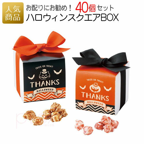 【業務用】ハロウィンスクエアBOX 40個セット|ハロウィンギフト お菓子 プレゼント スイーツ ポップコーン キャラメル プチギフト 結婚式 2次会 販促品 記念品 個包装 ノベルティ 粗品 お配り用 子供会 会社 企業 景品 イベント お礼 お返し 感謝 かわいい