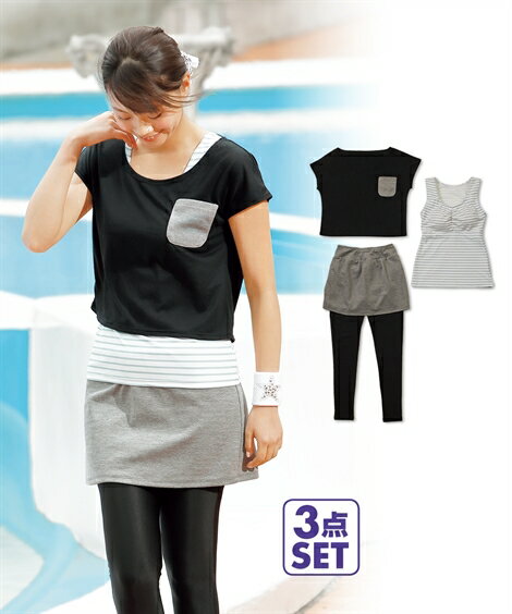 水着・ラッシュガード スカートレギンス付タンキニ水着3点セット ニッセン nissen